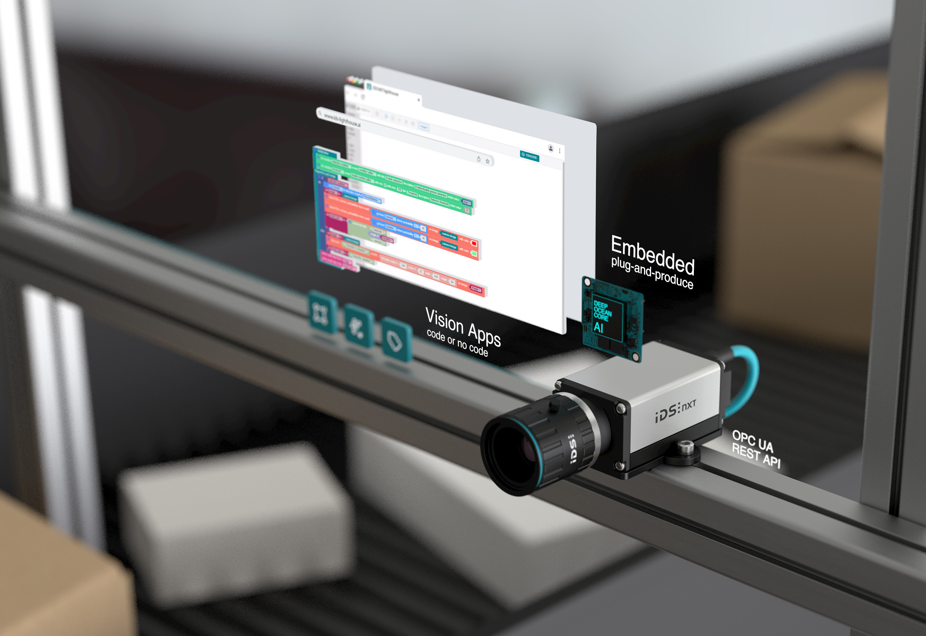 This training kit is designed for industrial applications, enabling technicians and engineers to learn how to utilize applied artificial intelligence in production processes, enhancing productivity and quality on production lines.